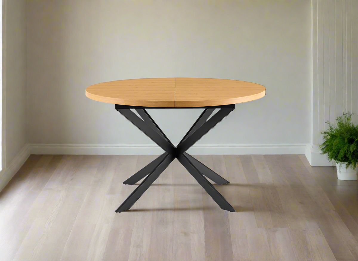 LIVEA שולחן אוכל אמי עגול 76*120*120 160 טבעי ר.מתכת שחורה