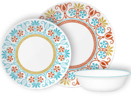 Corelle סט צלחות קורל 36 חלקים ל12 סועדים דגם Terracotta Dreams תוצרת קורנינג ארה"ב